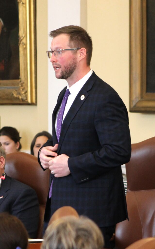 Sen. Trey Stewart (R-Aroostook) speaking to the Senate in support of the joint resolution.